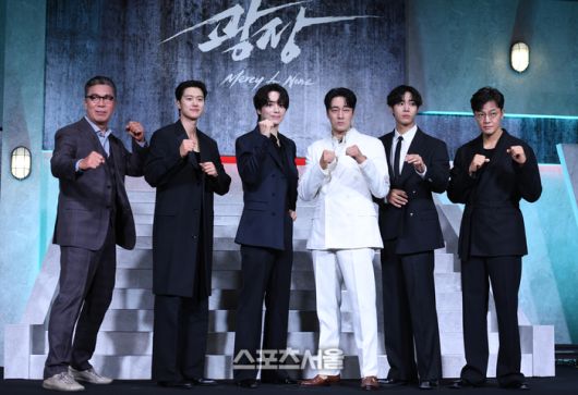 안길강, 공명, 이준혁, 소지섭, 추영우, 조한철(왼쪽부터)이 5일 앰버서더 서울 풀만 호텔에서 열린 넷플릭스 시리즈 ‘광장’ 제작발표회에서 포즈를 취하고 있다.2025. 6. 5.최승섭기자 thunder@sportsseoul.com [기사제보 news@sportsseoul.com] Copyright ⓒ 스포츠서울&sportsseoul.com