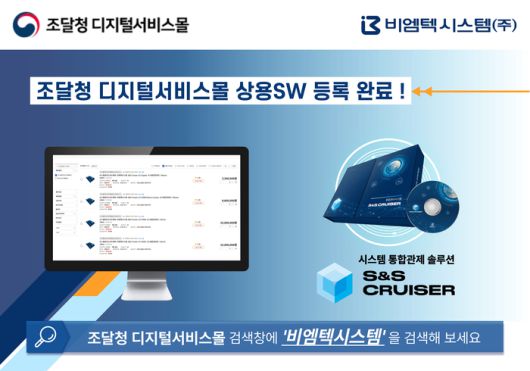비엠텍시스템(대표 김봉구)은 자사 솔루션 'S&S Cruiser(에스앤에스 크루저) v2.0'을 조달청 디지털서비스몰에 제3자 단가계약 등록을 완료하며 공공시장에서 경쟁력 강화에 박차를 가하고 있다고 밝혔다. 이번에 등록된 제품군은 총 7종으로, △EMS △Framework △NMS △SMS △SRM △Agent △SRM Device License이다.