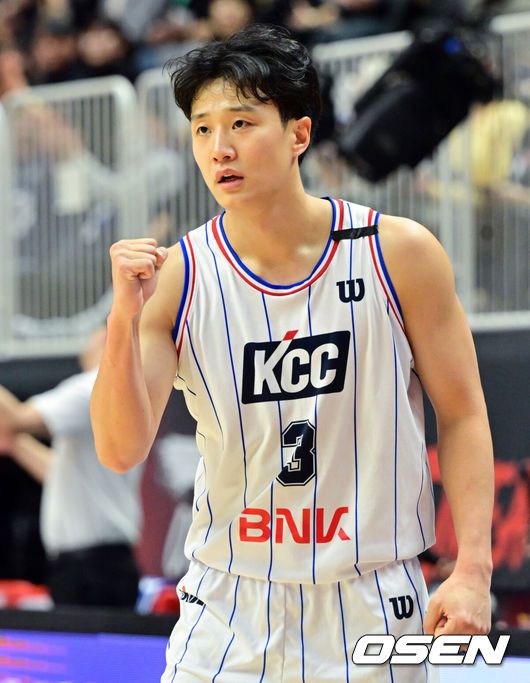 [OSEN=수원, 조은정 기자]1일 오후 수원 KT 아레나에서 '2024-2025 KCC 프로농구' 수원 KT 소닉붐과 부산 KCC 이지스의 경기가 열렸다.KT는 13승 10패로 공동 3위를, KCC는 10승 13패로 7위를 기록하고 있다.KCC 허웅이 2쿼터 버저비터 3점슛을 넣은 뒤 기뻐하고 있다. 2024.01.01 /cej@osen.co.kr |