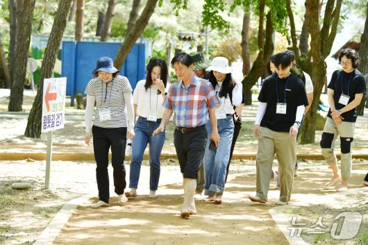 (화천=뉴스1) 한귀섭 기자 = 최문순 화천군수가 MZ 공직자들과 맨발 황톳길 트레킹을 하며 소통에 나섰다.