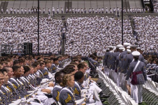 미 육군사관학교 졸업생도들이 지난 5월 24일 뉴욕주 웨스트포인트에서 열린 졸업식에 참석하고 있다. AP 연합뉴스 |