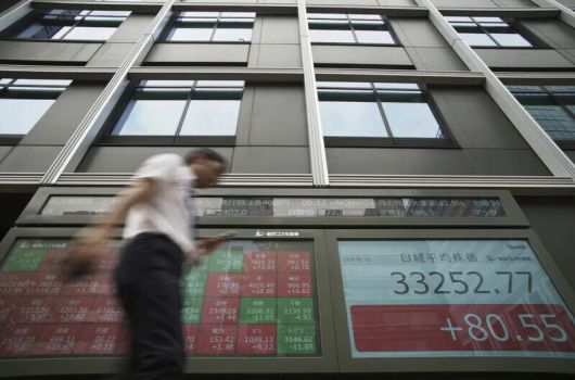 일본 도쿄 시내에서 주가지수가 표시되는 전광판 앞을 한 남성이 지나가고 있다. AP 연합뉴스 |