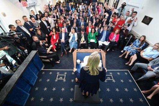 캐롤라인 레빗 백악관 대변인이 3일 백악관에서 기자들의 질문에 답하고 있다. 워싱턴 AFP 연합뉴스 |