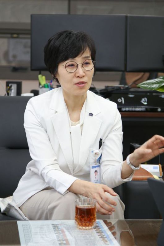이진경 한국원자력의학원장이 아시아경제와 인터뷰 하고 있다. 사진=원자력의학원 제공 |