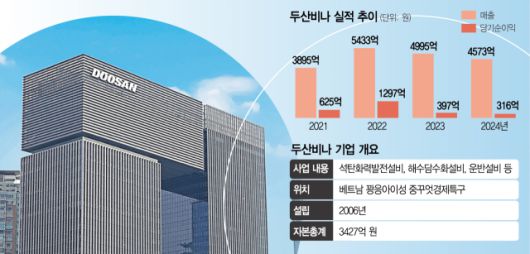 두산비나는 현지 산업공단 내 100만 ㎡(약 33만 평)에 달하는 부지에서 발전용 보일러와 해수담수화설비·운반설비·석유화학설비 등 4개 공장을 운영하고 있다. 바다와 인접해 있어 자체 부두와 항만설비까지 갖췄다. 최근에는 발전·화공 플랜트 등 대형 구조물 제작 위주였던 기존 사업에서 해상풍력 등 친환경 에너지 중심으로의 포트폴리오 전환도 꾀하고 있다.