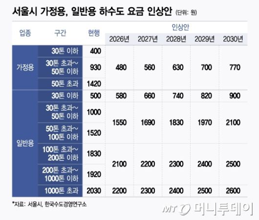 서울시 가정용, 일반용 하수도 요금 인상안/그래픽=윤선정 |