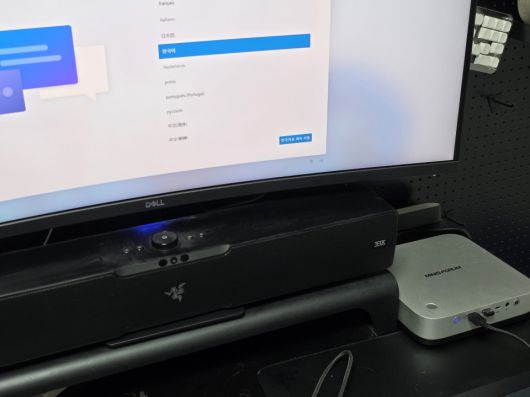 실제 설치를 완료한 모습이다. 마우스나 스피커 등 주변 주변기기와 비교해도 특별히 크지 않은 점이 인상적이다.