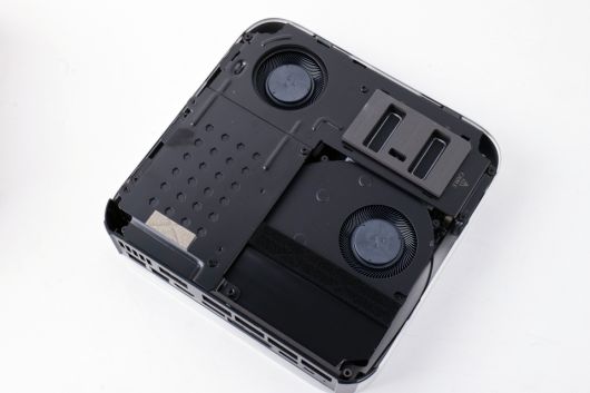 내부에는 두 개의 쿨링팬이 내장된 것을 알 수 있다. 내부에 위치한 PSU(전원공급장치)의 온도까지 낮추는 만큼 지속적으로 안정적인 전원 공급을 가능하게 한다. 또한, 듀얼 코퍼 히트 파이프 구조로 효율적인 쿨링에 힘쓴 모습이다.