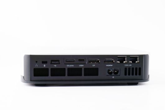 후면 단자를 통해 다양한 사용 시나리오가 가능하다는 점을 알 수 있다. 전원 케이블 외에 USB-PD 충전기로 전원을 공급할 수 있으며, USB 4보다 더 강력한 eGPU 사용을 위한 오큐링크 단자까지 갖췄다. 또한, 2개의 2.5Gbps 이더넷 단자를 갖춘 덕분에 로컬 네트워크에서 대용량 파일을 더욱 쾌적하게 전송할 수 있다.