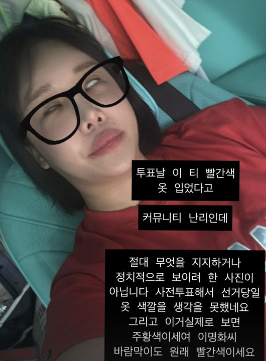SNS상에서는 “사전투표한 사람이면 그냥 일상복 입었을 수도”, “정치색 논란 너무 예민하다”는 반응과 함께 “그래도 공인이라면 더 조심했어야”, “이 시기에 빨간 옷은 좀”이라는 비판도 엇갈리고 있다.
