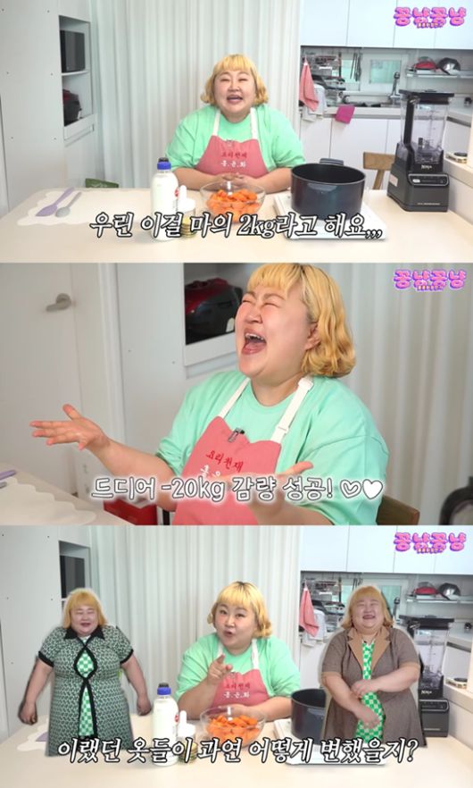 영상에서 홍윤화는 "3주 동안 계속 2㎏ 찌고, 빠지고를 겪다가 드디어 20㎏이 빠졌다"고 자축했다.