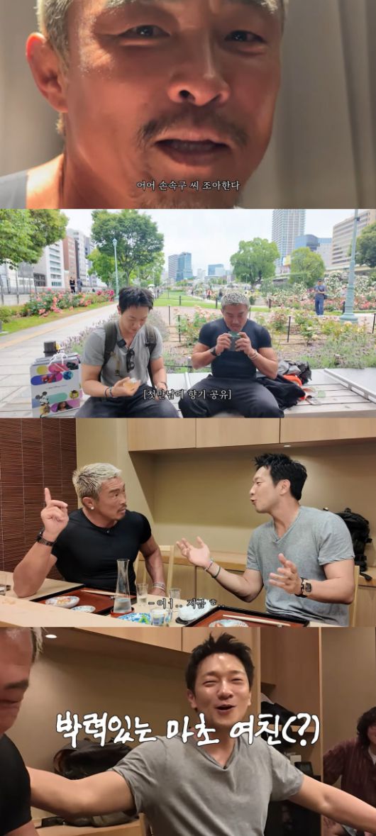 이날 손석구는 "제가 지금 오사카에 왔다. 온 이유는 한 사람의 아조씨로서 아조씨를 만나러 왔다. 어릴 때부터 성훈 형님이 도복 입고 히어로즈에서 파이팅하실 때부터 팬이라 설렌다"며 추성훈에 팬심을 드러냈다.