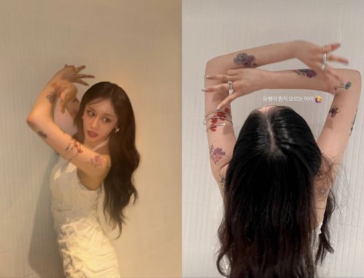 특히 팔에 새긴 꽃 모양 타투와 허리까지 내려오는 긴 웨이브 헤어가 어우러지며 은근한 관능미를 자아냈다. 이어 “유행이 뭔지 모르는 아이”라는 문구와 함께 뒷모습이 담긴 사진도 게재했다.