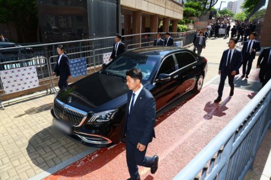 대통령경호처는 5일 이재명 정부 국정 기조에 따라 ‘열린 경호, 낮은 경호’ 방침을 적용한다고 밝혔다. 사진은 지난 4일 이 대통령과 김혜경 여사가 탑승한 차량이 인천 계양구 사저에서 출발하는 모습. 연합뉴스 |