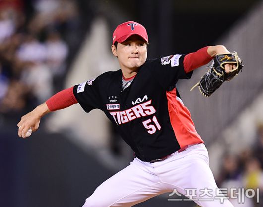 [스포츠투데이(잠실)= 권광일 기자] 2025 신한은행 SOL Bank KBO리그 KIA 타이거즈와 두산 베어스의 경기가 5일 서울 잠실야구장에서 열렸다. KIA 전상현이 8회말 구원 등판해 역투하고 있다. 2025.06.05. [스포츠투데이 권광일 기자 sports@stoo.com]