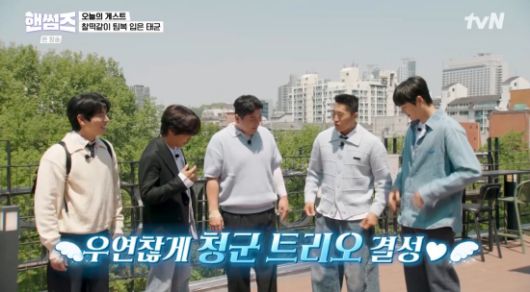 이때 김태균이 등장했고, 이이경은 "운동부는 뭐 얘기가 된 거냐"라며 김태균과 김동현, 오상욱의 의상을 언급했다. 김태균은 "말 안 해도 통하는 게 있다"라며 반가움을 드러냈다.
