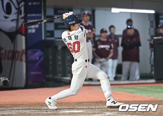 [OSEN=부산, 이석우 기자] 5일 부산 사직야구장에서 2025 신한 SOL 뱅크 KBO 리그 롯데 자이언츠와 키움 히어로즈의 경기가 열렸다. 홈팀 롯데는 데이비슨이, 방문팀 키움은 하영민이 선발 출전했다. 롯데 자이언츠 한태양이 9회말 2사 만루 좌익수 왼쪽 2타점 2루타를 치고 있다. 2025.06.05 / foto0307@osen.co.kr