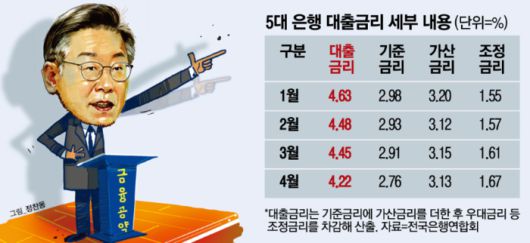 이재명 대통령은 그동안 은행들이 가산금리 중 법적 비용을 차주에게 떠넘겼다고 보고 은행법을 개정해 각종 비용을 가산금리에 넣지 못하도록 막겠다는 방침이다.