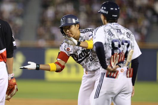 김동준은 1, 2루 사이를 뚫는 안타를 쳤다. 2루 주자 박준순이 3루를 거쳐 홈까지 달렸다.