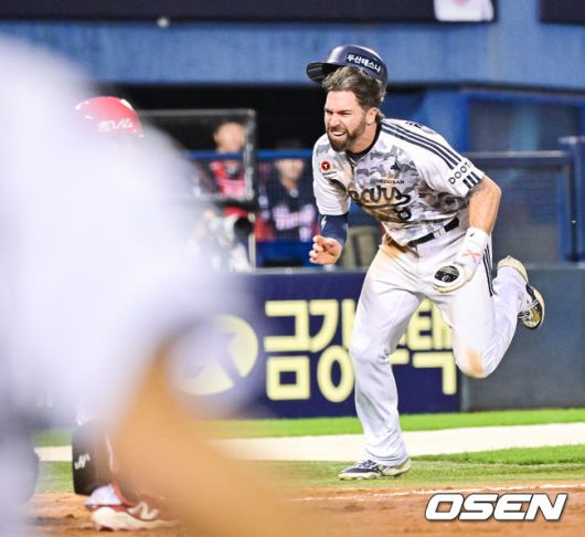 연장10회말 2사 1,2루 두산 김민석의 끝내기 안타때 2루 주자 케이브가 홈 슬라이딩을 하고 있다. 2025.06.05 / soul1014@osen.co.kr