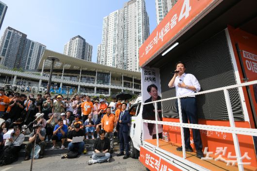 개혁신당 이준석 대통령선거 후보가 1일 경기도 화성시 동탄호수공원에서 집중 유세를 하고 있다. 화성=박종민 기자