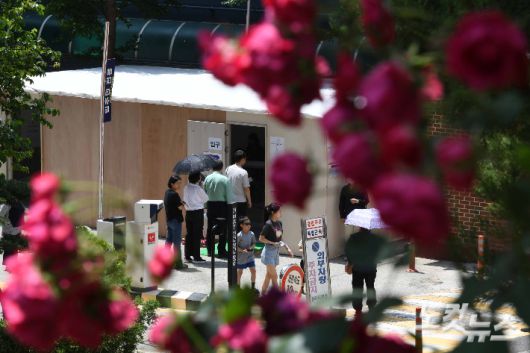 제21대 대통령선거일인 3일 서울 은평구 라이브미성아파트 주차장에 마련된 투표소에서 시민들이 투표를 하고 있다. 박종민 기자