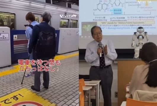 올해 92세인 카가와 야스오 일본 사립 여자영양대학 부학장은 전철을 세 번 갈아타는 등 2시간에 걸쳐 출근한다. 사진은 여자영양대학이 공개한 야스오 부학장의 하루 일과. 자료 : 여자영양대학 출판부 유튜브 채널 |