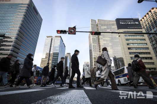 [서울=뉴시스] 정병혁 기자 = 서울 종로구 광화문네거리에서 직장인들이 출근하고 있다. 2025.01.02. jhope@newsis.com |