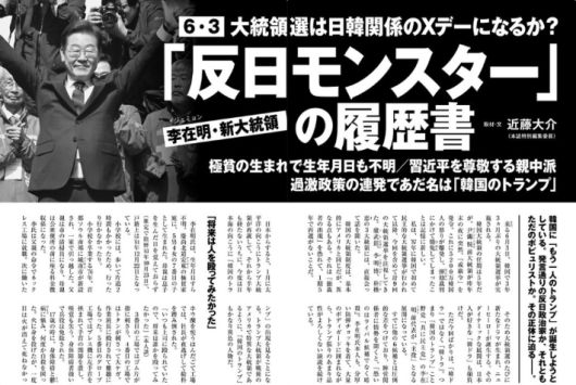 일본 극우 성향 주간지 주간현대(2025년 6월 9일자)는 "'반일 몬스터' 새 대통령 이재명의 이력서"라는 제목의 기사에서 이 대통령에 관해 소개했다.