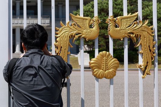 지난 4일 서울 종로구 청와대 영빈문을 찾은 시민이 영빈관을 촬영하고 있다. 이재명 대통령은 대통령 집무실을 청와대로 이전할 방침이다. 다만 청와대 개·보수 작업이 완료될 때까지는 당분간 용산 대통령실로 출근할 전망이다. [연합] |