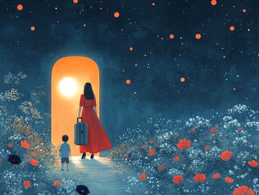 떠나는 엄마의 뒷모습을 바라보는 소년. 미드저니로 그린 일러스트를 일부 수정해 완성했다. 이경희 기자 |
