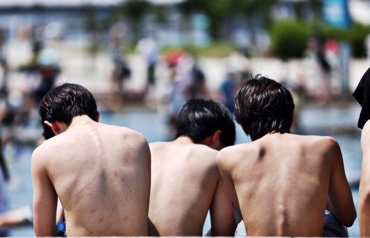 현충일인 6일 학생들이 더위를 피해 여의도 물빛광장에서 시간을 보내고 있다. 연합뉴스 |