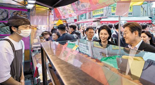 이 대통령은 이날 오전 10시 50분쯤 현충일 추념식 행사를 마치고 한남동 관저로 돌아가던 중 근처 시장으로 방향을 돌렸다. 이 대통령이 “관저에 가도 아무것도 없다”며 시장 방문을 즉석에서 결정했다고 한다. 장도 보고 시민과 상인들을 만나 민생 경기도 점검해보겠다는 취지였다는 것이다. 이 대통령이 취임 후 일상 현장을 찾아 시민들을 만난 건 처음이다.