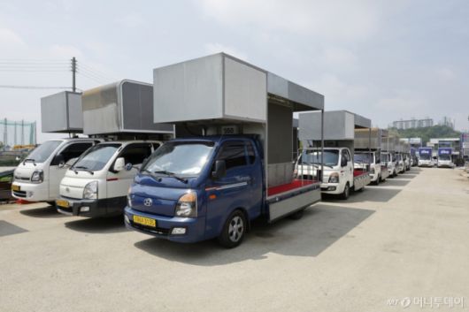 온동네 골목을 누비며 아기들의 단잠을 깨운 선거 유세차량들. /사진=뉴스1 |