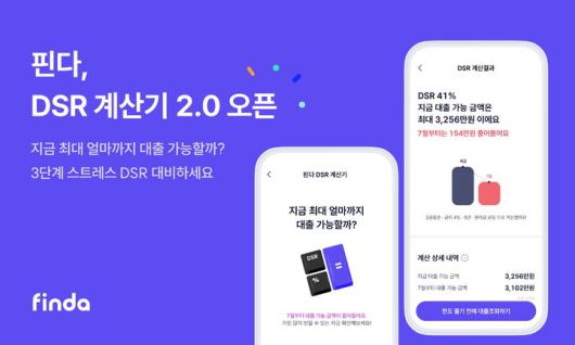 대출 전문 핀테크 기업 핀다가 3단계 스트레스 DSR 규제 시행을 앞두고 'DSR계산기 2.0'을 개편 출시했다고 7일 밝혔다.