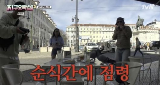 방송에서 사진 콘테스트 미션을 받은 이영지와 미미는 리스본에서 가장 오래된 제과점을 방문해 여유롭게 야외 테이블에서 빵을 즐기고 있었다.