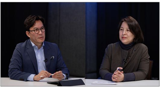 <인터뷰 중인 김경민 서울대 도시계획과 교수와 이정애 SBS미래부장>