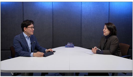 <지난달 8일 SBS 목동 본사에서 이정애 미래부장과 인터뷰 중인 김경민 서울대 교수>