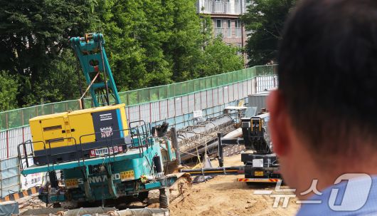 6일 오전 경기 용인시 기흥구 서천동 인덕원~동탄 복선전철 제10공구 노반신설 기타공사 현장에 '천공기'(지반을 뚫는 건설기계)가 넘어져 있다. 2025.6.6/뉴스1 ⓒ News1 김영운 기자 |