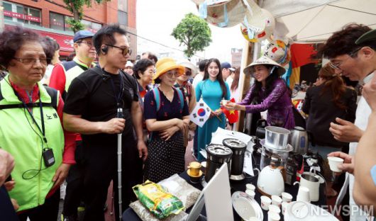 [서울=뉴스핌] 양윤모 기자 = 서울시 시각장애인연합회 노원구지회(회장 김근철) 회원들이 7일 오후 서울 공릉역에서 동부아파트 삼거리까지 이어지는 경춘선 공릉숲길 일대에서 열린 ‘제3회 경춘선 공릉숲길 커피축제’중 베트남 커피생산국 부스에서 커피문화를 체험하고 있다. 노원구(오승록 노원구청장) 커피축제는 공릉동 지역의 자생적 커피 문화를 바탕으로 2023년 처음 시작돼 빠르게 성장해 구를 대표하는 문화축제로 자리매김하고 있다. [사진=노원구청] 2025.06.07 yym58@newspim.com |