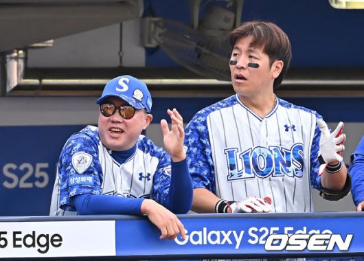 [OSEN=대구, 이석우 기자] 7일 대구삼성라이온즈파크에서 2025 신한 SOL 뱅크 KBO 리그 삼성 라이온즈와 NC 다이노스의 경기가 열렸다. 홈팀 삼성은 레예스가, 방문팀 NC는 신민혁이 선발 출전했다. 삼성 라이온즈 박진만 감독이 2회말 1사 만루 이재현의 좌익수 희생플라이때 득점을 올린 김영웅과 하이파이브를 하고 있다. 2025.06.07 / foto0307@osen.co.kr