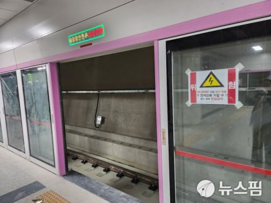 [서울=뉴스핌] 조준경 기자 = 7일 오후 서울 도시철도 신림선 샛강역에서 전동 휠체어가 추락해 운행이 일시적으로 중단됐다가 재개됐다.