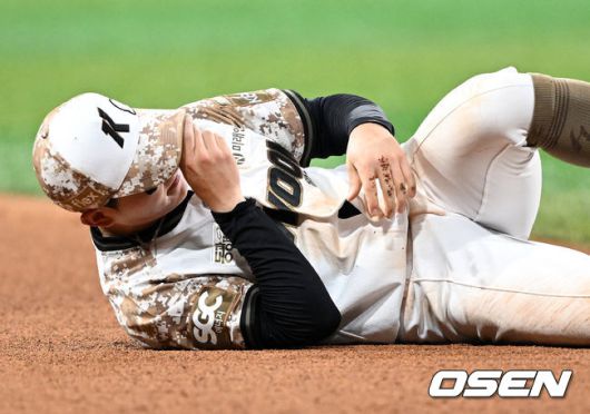 [OSEN=고척, 이대선 기자] 7일 오후 서울 고척스카이돔에서 2025 신한 SOL Bank KBO리그 키움 히어로즈와 LG 트윈스의 경기가 열렸다. 키움은 알칸타라, LG는 임찬규를 선발 투수로 내세웠다. 8회초 1사에서 키움 송지후가 LG 문성주의 타구를 처리하는 과정에서 부상을 당하고 있다. 2025.06.07 /sunday@osen.co.kr