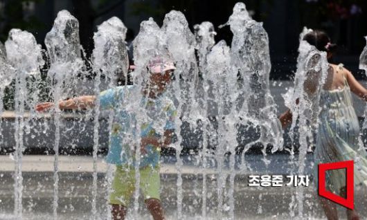 서울 경기 등 중부지방에 폭염주의보가 발효된 19일 서울 낮기온이 35도까지 올라가자 광화문 광장 분수대를 찾은 아이들이 물놀이를 하며 더위를 식이고 있다. 기상청은 이날 늦은 밤부터 제주도에는 장마가 시작될것으로 예보했다. 사진=조용준 기자 jun21@ |