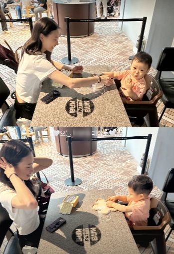 공개된 사진 속 손연재는 여의도에 위치한 쇼핑센터를 찾은 모습이다. 손연재는 아들과 함께 식사하러 갔으며, 기다리는 동안 아들이 지루하지 않게 육아 용품을 준비한 모습이 인상적이다.