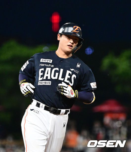여세를 몰아 한화는 노시환의 좌익수 키 넘어가는 2루타를 터뜨린 뒤 최인호이 몸에 맞는 볼로 2사 만루 기회를 잡았다. 이어 최재훈의 중전 적시타로 1점을 더했다. 2루 주자 노시환이 홈에서 아웃돼 이닝이 끝났지만 2-0으로 달아났다.