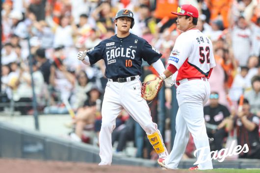 0의 균형이 깨진 건 4회초였다. 선두타자 하주석이 안타를 쳤고, 문현빈의 삼진과 채은성의 중견수 뜬공 이후 2루 도루에 성공했다. 2사 2루에서 이진영의 좌전 안타 때 홈으로 들어오면서 팀에 선취점을 안겼다.