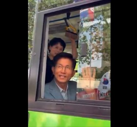 X와 스레드에 올라온 영상을 보면 서초13번 마을버스에 탄 김 전 후보는 창밖에서 ‘윤 어게인’이 적힌 피켓을 흔드는 집회 참가자들에게 브이자를 들어 보이며 인사를 했다. 이 영상을 올린 게시자는 “김문수 보자마자 마음에 쌓여있던 것 터지면서 너무 울었다”며 “윤카 다음으로 이런 분 아니면 누가 우리 대한민국 살려주실 수 있냐고”라고 적었다.