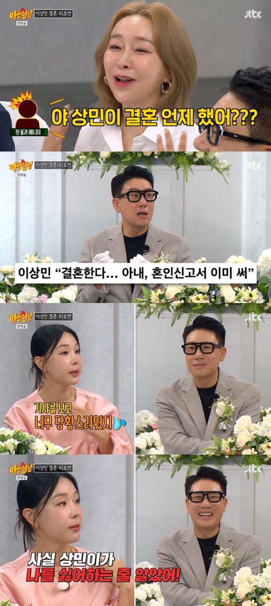 이지혜 또한 "나도 몰랐다. 기사를 보고 알아서 깜짝 놀랐다. 최근에 프로그램을 같이했다. 1월까지 프로그램을 같이했으니까, 기사를 보고 너무 당황했다. 그래서 상민이가 나를 싫어하는 줄 알았다 나한테만 얘기를 안 한 건 줄 알고"라며 오해했음을 고백했다.