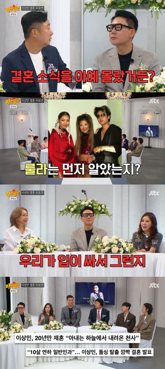 이날 이수근은 "'아형' 하면서 (이상민과) 10년 알았는데 결혼 소식을 아예 몰랐다. 너네한테는 애기해줬냐"라며 룰라의 김지현과 채리나에게 물었다.